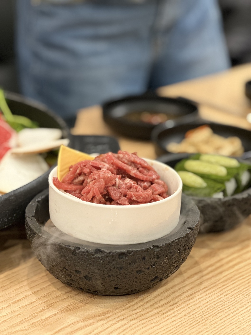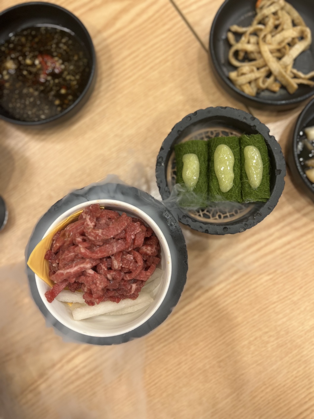 - 한우 육회: 함께 제공되는 감태 초밥 위에 육회를 올려 먹는 이색적인 조합으로 즐겨보세요!
