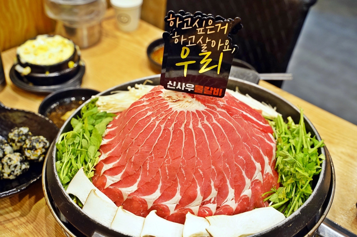 1人 가격이 21,000원 정도 합니다. 비싸보여도 3-4명 방문해서 2인 시키면 양이 많아 충분히 드실 수 있어요. 삼겹살집 가도 1인분에 13000~15000원 하잖아요? 3 명가서 3-5인분 먹는 가격에 비하면 정말 좋죠 ^^ 가성비 좋다고 소문난 건 안 비밀~!