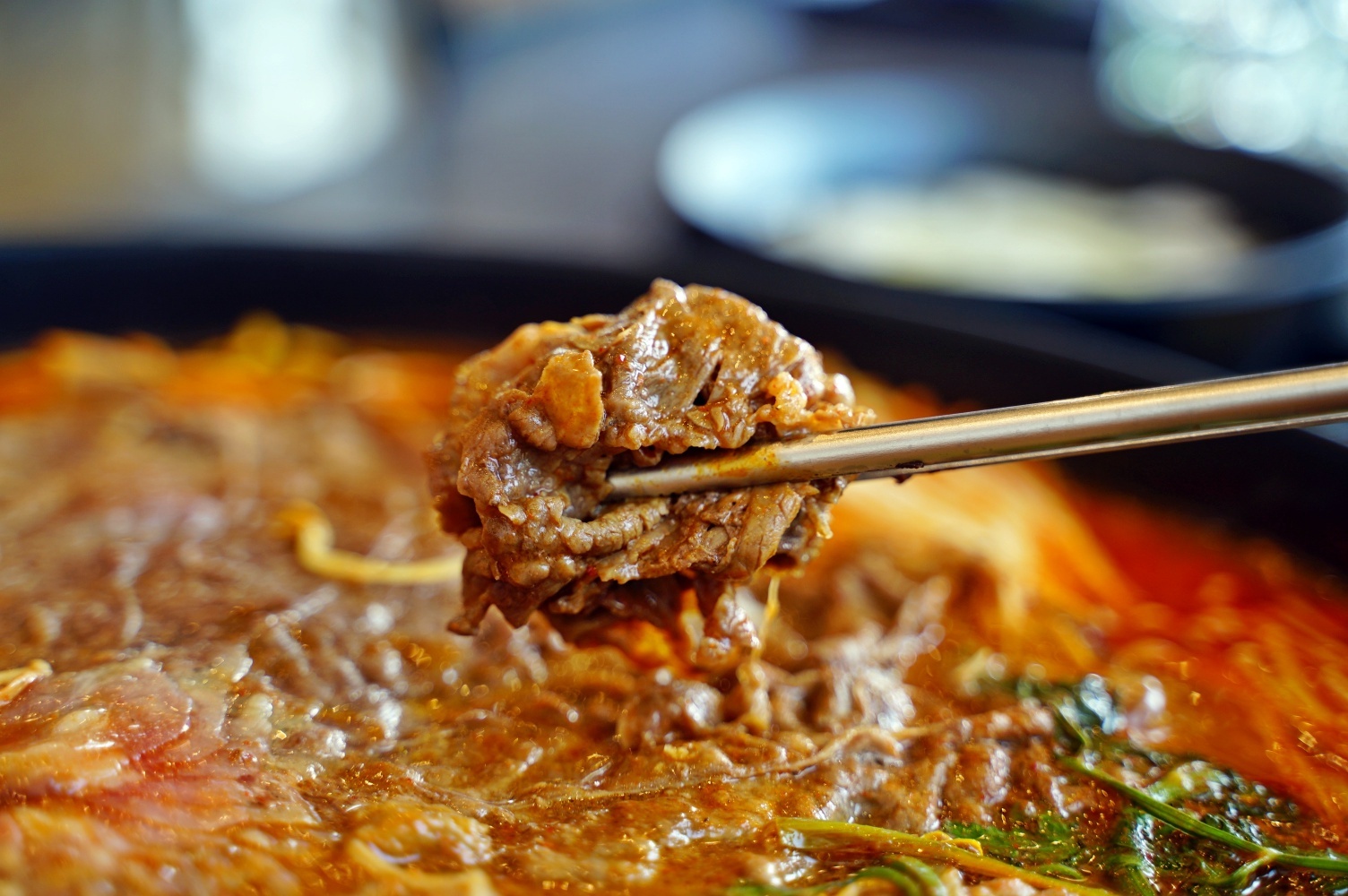 매운 음식을 못 드시는 분들도 함께 즐길 수 있는 반반 샤브샤브예요. 얼큰한 맛의 매운 육수와 맵지 않고 담백한 고기 육수가 반씩 나뉘어 있어, 맵찔이는 물론 어르신, 아이까지 모두가 즐길 수 있는 메뉴입니다. 다양한 채소와 고기를 끓는 육수에 살짝 데쳐 먹으면, 깔끔하고 시원한 국물 맛을 느낄 수 있어요.